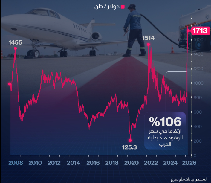 الحرب في الشرق الاوسط تدفع أسعار وقود الطائرات إلى مستويات قياسية.