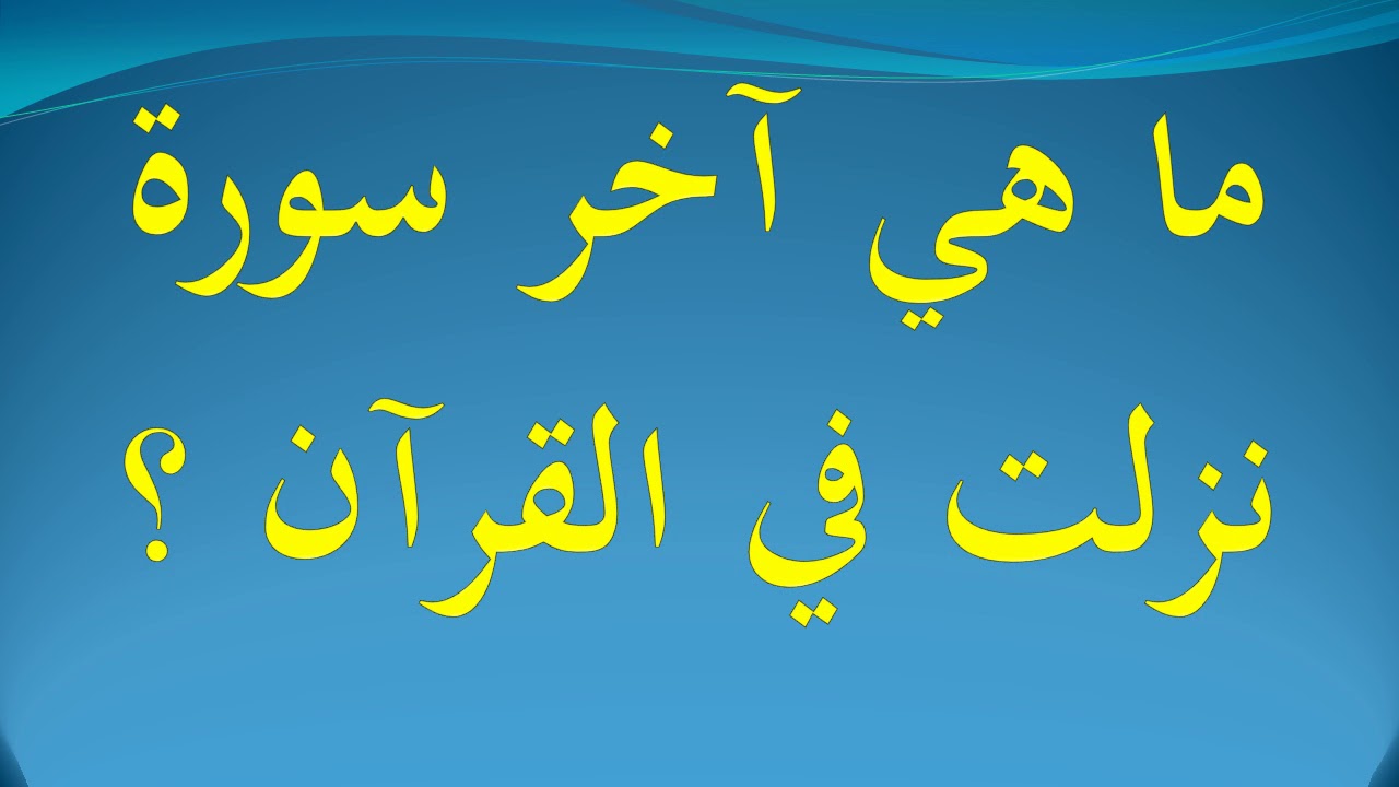 سؤال حول آخر سورة نزلت من القرآن :الجواب : عن الإمام الرضا (عليه السلام) عن أبيه (عليه السلام) قال : أول سورة نزلت {أقرأ} وآخر سورة نزلت { إِذَا جَاءَ نَصْرُ اللَّهِ وَالْفَتْحُ } (1).
