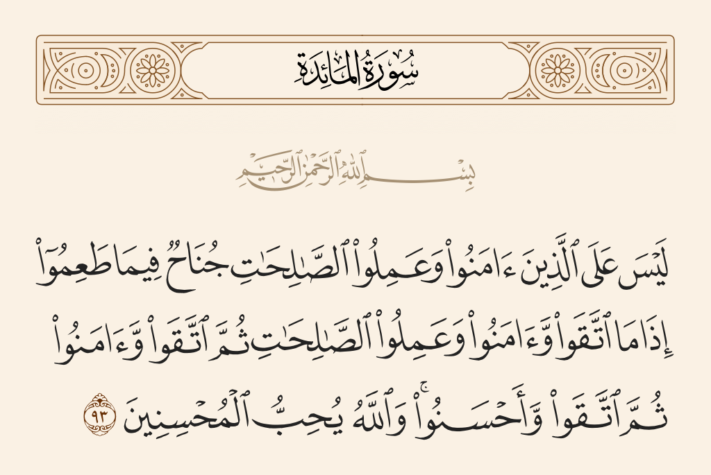 قال رسول الله (صلى الله عليه واله) إنه سيكون قوم يبيتون وهم على اللهو وشرب الخمر والغناء (الى أن قال:) فلما نزل تحريم الخمر والميسر والتشديد في أمرهما ، قال الناس - من المهاجرين والأنصار- : يا رسول الله، قتل أصحابنا وهم يشربون الخمر ، وقد سماه الله رجساً ، وجعلها من عمل الشيطان ، وقد قلت ما قلت ، فيضر أصحاب نا ذلك شيئاً بعدما ماتوا؟ فأ نزل الله : (ليس على الذين آمنوا وعملوا الصالحات جناح فيما طعموا) (1)