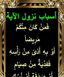 عن حريز، عمن أخبره، عن أبي عبدالله (عليه السلام)، قال: مر رسول الله (صلى الله عليه واله) على كعب بن عجرة والقمل يتناثر من رأسه وهو محرم، فقال له: أتؤذيك هوامك ؟ فقال: نعم، فأنزلت هذه الآية: (فمن كان منكم مريضا او به اذى من راسه ففذية من صيام أو صدقة أو نسك) فأمره رسول (صلى الله عليه واله) أن يحلق، وجعل الصيام ثلاثة أيام، والصدقة على ستة مساكين، لكل مسكين مدّان، والنسك شاة(1) _____ 1- الكافي :4: 358، حديث 270.