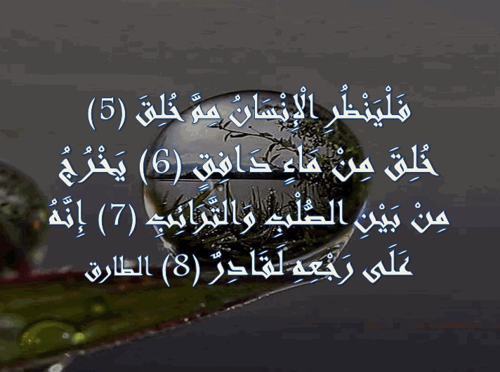 {فَلْيَنْظُرِ الْإِنْسَانُ مِمَّ خُلِقَ (5) خُلِقَ مِنْ مَاءٍ دَافِقٍ (6) يَخْرُجُ مِنْ بَيْنِ الصُّلْبِ وَالتَّرَائِبِ} [الطارق: 5 - 7]