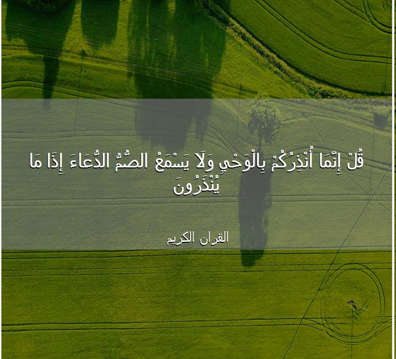 { قُلْ إِنَّمَا أُنْذِرُكُمْ بِالْوَحْيِ} أي: قل يا محمد إنما أنذركم من عذاب الله وأخوفكم بما أوحى الله إلي { وَلَا يَسْمَعُ الصُّمُّ الدُّعَاءَ} شبههم بالصم الذين لا يسمعون النداء إذا نودوا لأنهم لم ينتفعوا بالسمع والمعنى أنهم يستثقلون القرآن وسماعه وذكر الحق فهم في ذلك بمنزلة الأصم الذي لا يسمع {إذا ما ينذرون} أي: يخوفون.