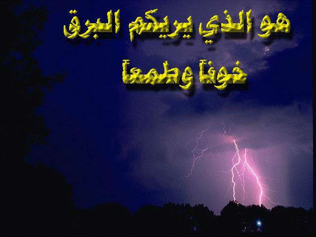 {هُوَ الَّذِي يُرِيكُمُ الْبَرْقَ خَوْفًا وَطَمَعًا وَيُنْشِئُ السَّحَابَ الثِّقَالَ} [الرعد : 12] .