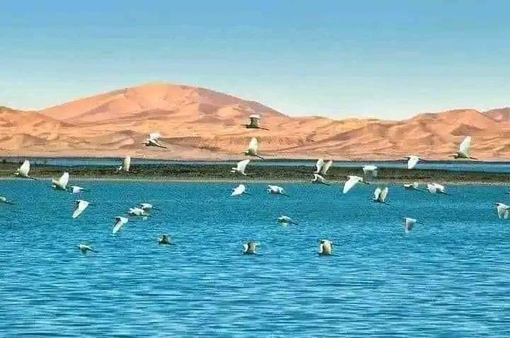 ظهور بحيرة في الجنوب الجزائري بسبب الأمطار ، طولها 25 كلم وعرضها 7 كلم في مصب واد الساورة