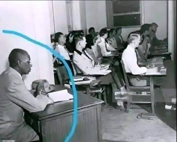 الرجل في الصورة يجلس بشكل منفصل هو جورج ماك لورين، أول رجل أسود تم قبوله في جامعة أوكلاهوما عام 1948. اضطر إلى الجلوس في زاوية بعيدا عن زملائه الطلاب البيض.