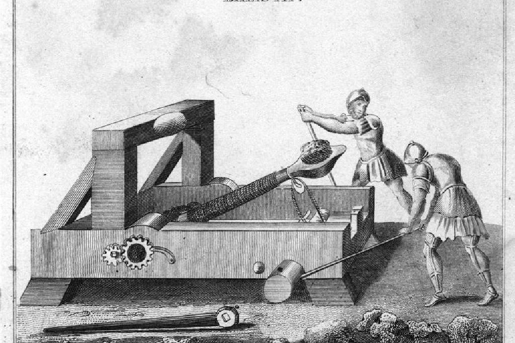 يعد المنجنيق من اهم الأسلحة القديمة ويتكون من منجنيق الجر ومنجنيق الثقل الموازن من قاعدة وذراع وحمالة، وأول من أستخدمه اليونان في حدود 399 قبل الميلاد، ويعد المنجنيق من الأسلحة المهم في الحروب وتدمير حصون الأعداء وذلك بقذف الأحجار الكبير على الأعداء وفتح ثغرات في صفوف الأعداء، وقد أستخدمه المسلمون في حروبهم بصورة ملحوظة.