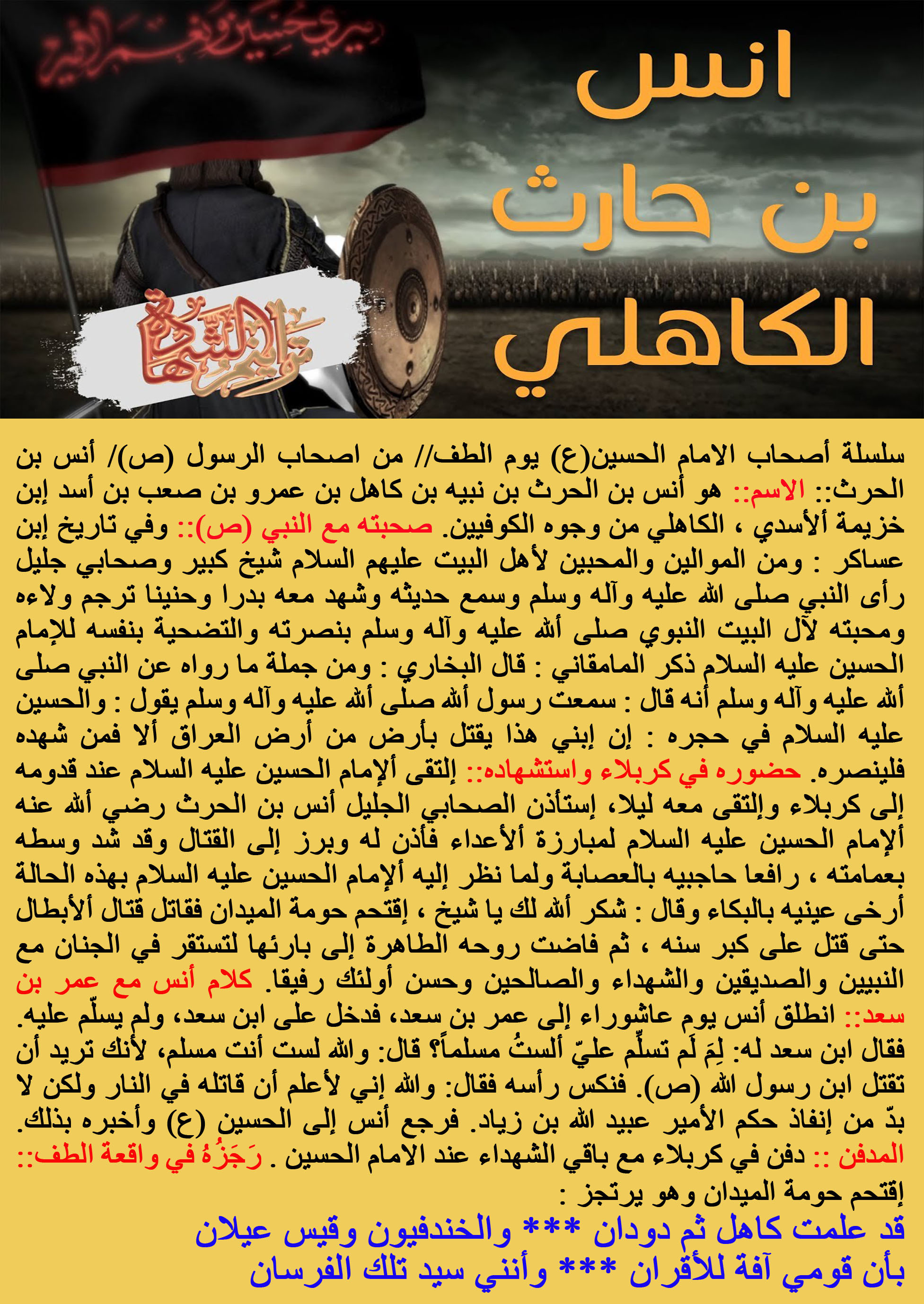 سلسلة أصحاب الامام الحسين(ع) يوم الطف// من اصحاب الرسول (ص)/ أنس بن الحرث::