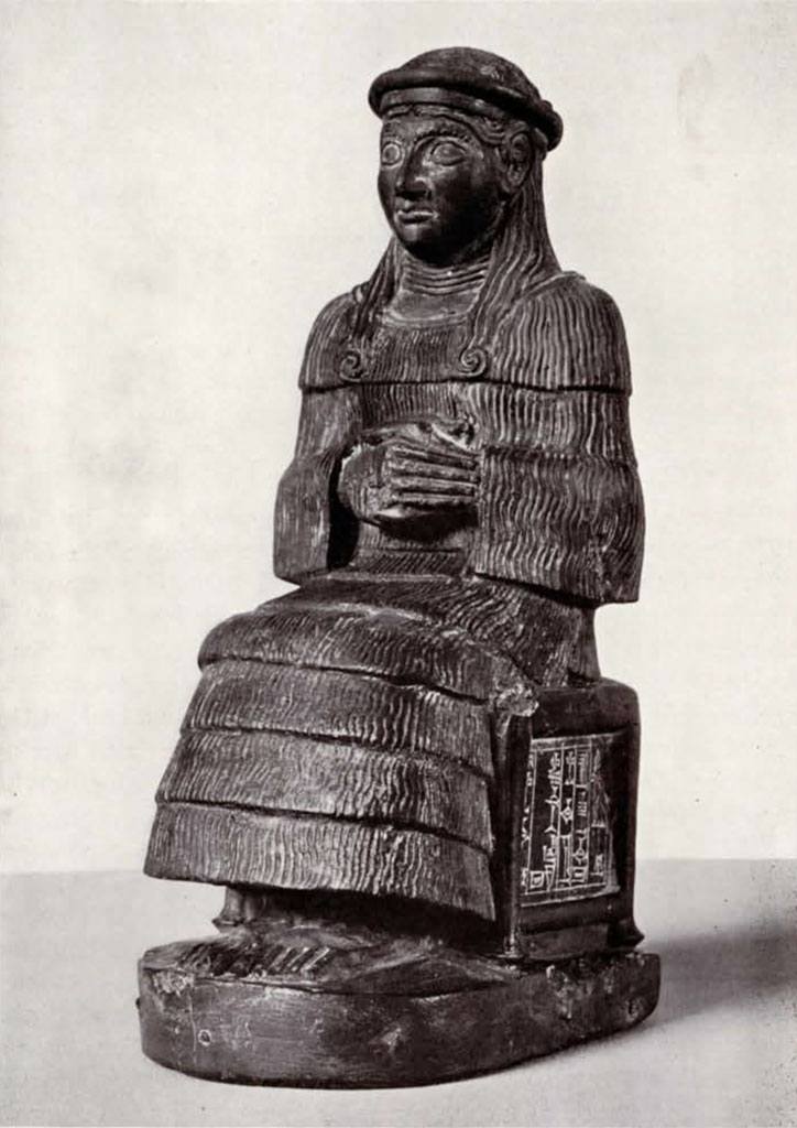 تمثال من الديوريت الأسود للإلهة نينجال. يوثق النقـ ـش تكريس التمثال من قبل رئيس الكهـ ـنة، إيناناتوم، حوالي عام ٢٠٨٠ قبل الميلاد. الرأس والكتفان مرممان جزئيا.