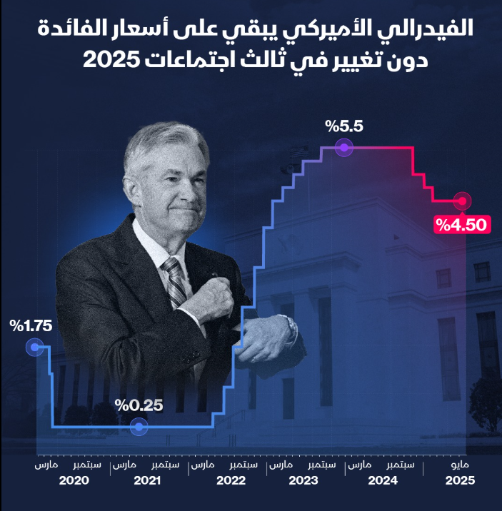 #الفيدرالي الأميركي يُبقي على أسعار الفائدة للمرة الثالثة على التوالي دون تغيير عند نطاق يتراوح بين 4.25% و4.5%.. كيف كان مسار الفائدة منذ 2020؟ ..