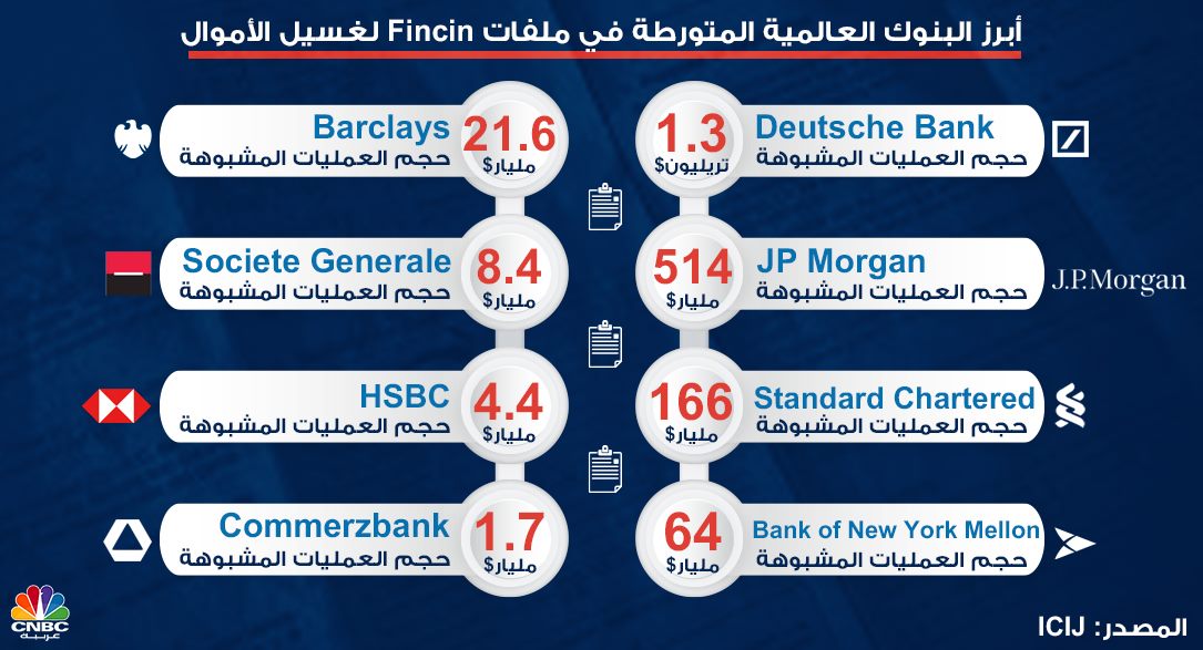 تُبين تورط العديد من البنوك العالمية بعمليات مشبوهة (غسيل الاموال) من خلال وثائق مسربة.. أبرز هذه البنوك في الصورة ادناه..