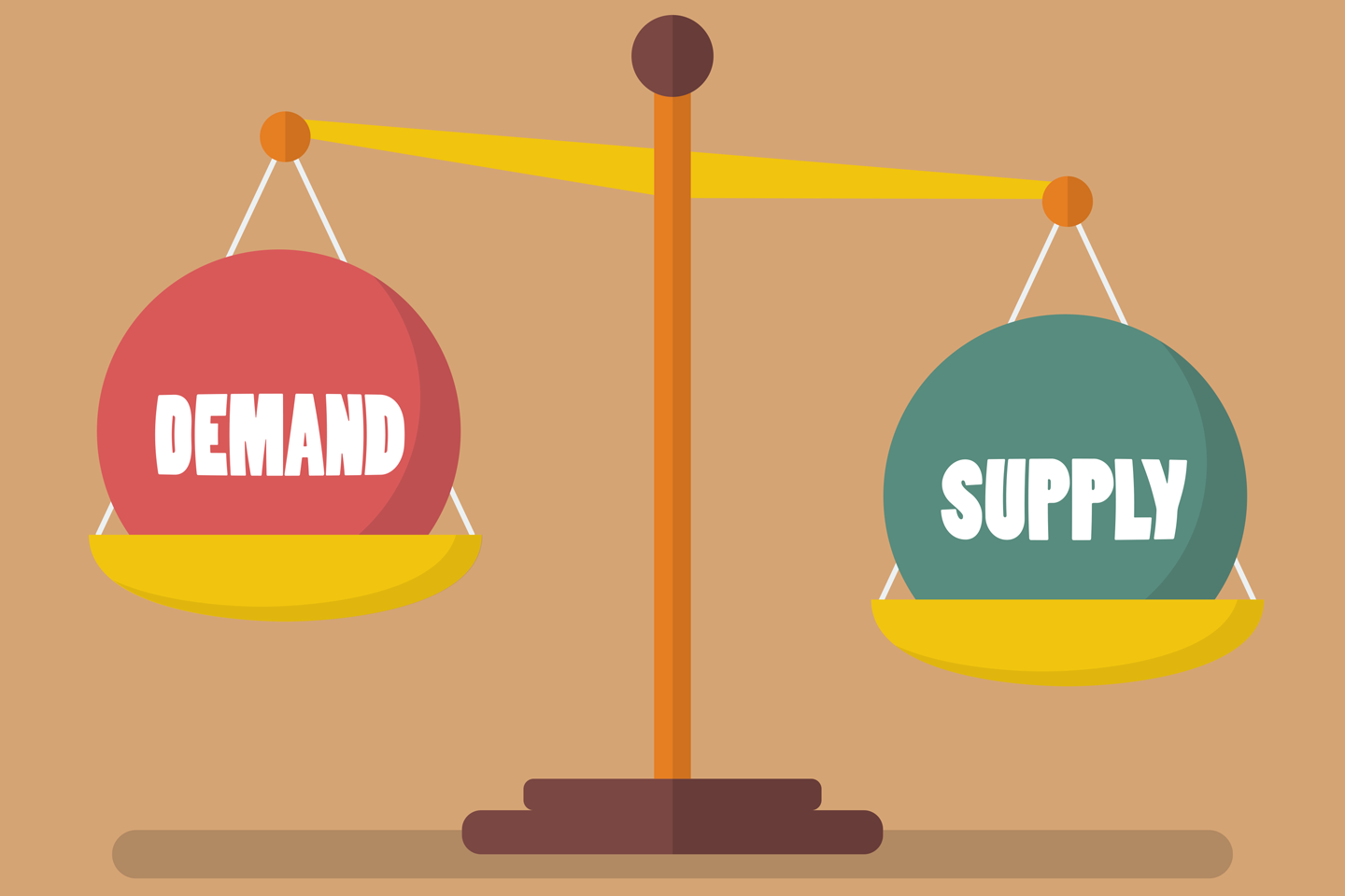 نتيجة لحالة عدم التوازن في السوق سيتعين على المشترين عرض أسعار أعلى على البائعين من أجل بيع تلك البضاعة والتخلي عنها، وعلى هذا سيرتفع سعر تلك السلعة إلى أن تتساوى الكمية المطلوبة من المشتريين مع الكمية المعروضة لدى البائعين، كما يتوسع البالون حتى تتساوى الضغوط تمامًا. وقد نصل في النهاية إلى تساوي الكمية المطلوبة مع الكمية المعروضة وهذا ما يطلق عليه «توازن السوق». يُمثل التوازن الاقتصادي بالسعر الذي يتساوى عنده العرض والطلب على سلعة ما، وبعبارة أخرى عند نقطة تقاطع المنحنيات المتوقعة للعرض والطلب.