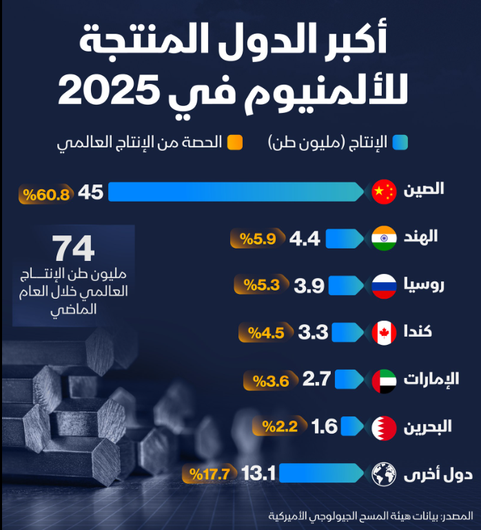 اكبر الدول المنتجة للألمنيوم في 2025
