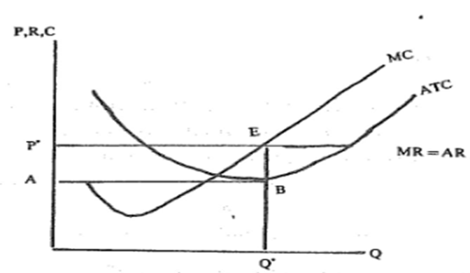 في حالة وجود مشروع لديه من الامكانيات والقدرات الانتاجية العالية ما يهيئه للاستفادة من تلك الكفاءة بحيث يستطيع جعل تكاليفه الحدية ترتفع بمعدلات بطيئة جداً. ان هذا الوضع يتيح للمشروع تحقيق كميات كبيرة من الانتاج عند الوضع التوازني. وكون المشروع قادر ليس فقط على تغطية تكاليفه الكلية و(بضمنها المتغيرة) ، بل ايضاً على جعل منحنى متوسط الكلفة الكلية ATC يمر تحت خط السعر، فيقال ان هذا المشروع يحقق مستوى الارباح الاقتصادية. بالاضافة الى الربح الاعتيادي