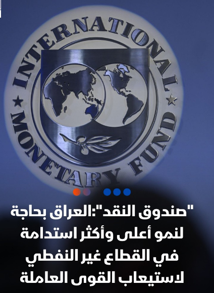صندوق النقد الدولي: التقديرات تشير إلى نمو الناتج المحلي الإجمالي غير النفطي للعراق 6% في 2023 بعد توقف النمو في 2022، و #العراق بحاجة إلى زيادة الصادرات غير النفطية والإيرادات الحكومية وتقليل تعرض الاقتصاد لصدمات أسعار #النفط