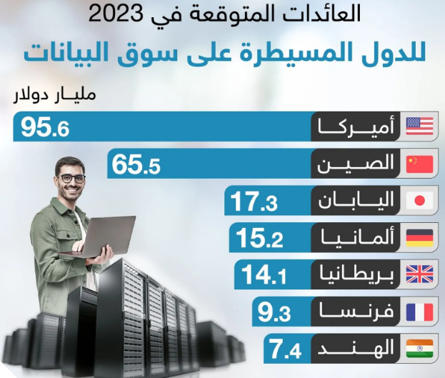 الولايات المتحدة والصين تسيطران على إيرادات سوق البيانات العالمي الذي يتضمن شبكات البيانات وتكنولوجيا المعلومات .