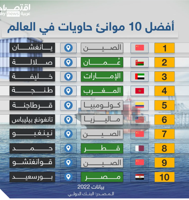 أعلاه إليكم قائمة أفضل 10 موانئ حاويات في العالم خلال 2022