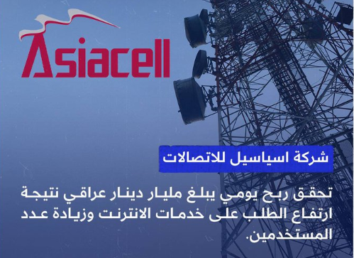 حققت شركة اسياسيل Asiacell connect للاتصالات صافي ارباح يبلغ 100 مليار دينار في الربع الاول من السنة والمكون من ثلاثة اشهر. حققت الشركة لمعدل أرباح يومي يبلغ مليار دينار عراقي. هذه الارباح نتيجة ارتفاع الطلب على خدمات الانترنت المقدمة من الشركة وارتفاع عدد مستخدمي اسياسيل.