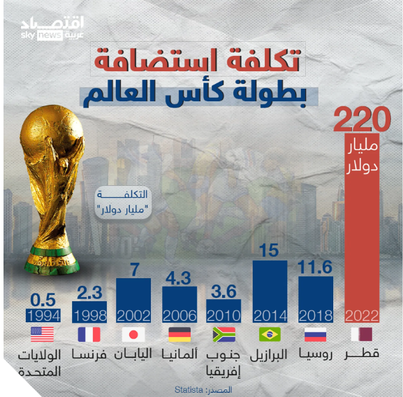 بارتفاع يتجاوز 1360% عن أقرب البطولات إنفاقاً.. كأس العالم قطر 2022 الأكثر تكلفة بتاريخ المونديال.