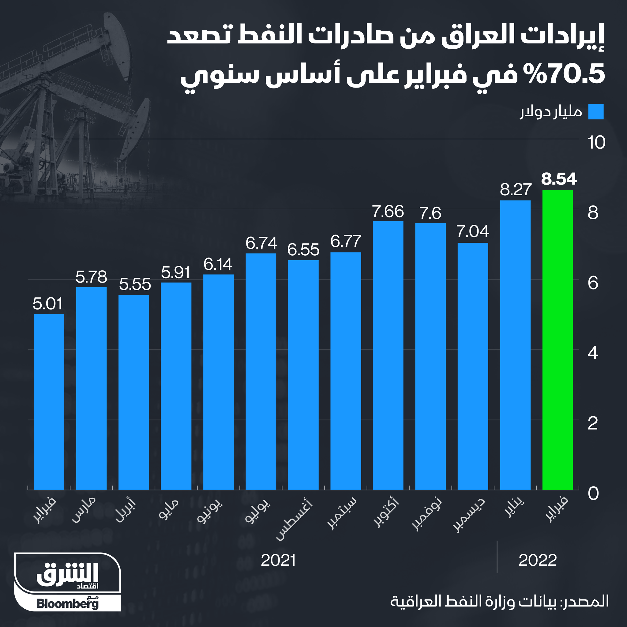 8.54 مليار دولار إيرادات #العراق من صادرات #النفط في فبراير 2022، مقابل 5 مليارات دولار قبل عام ؟!