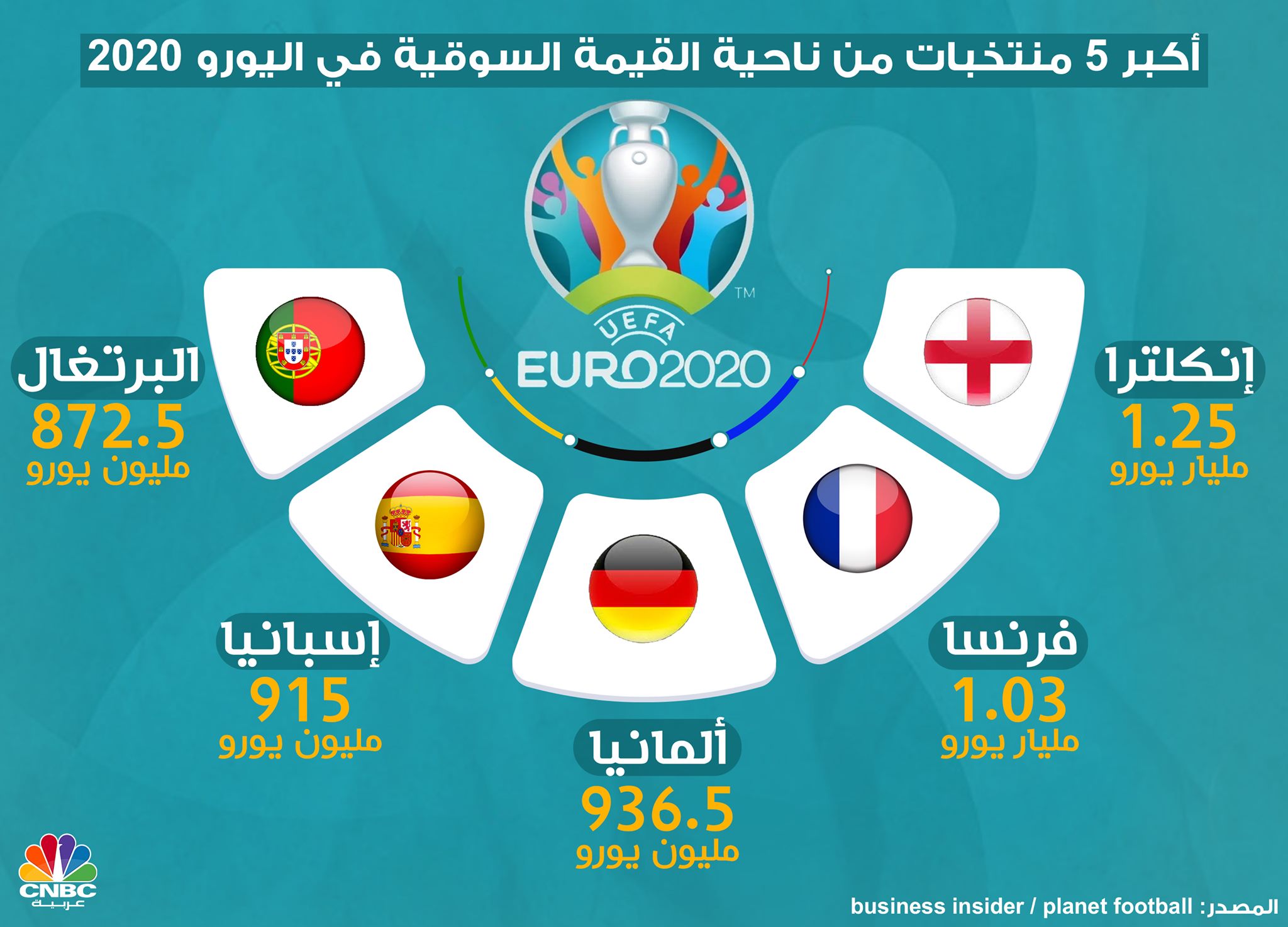القيمة السوقية لمنتخب #إنكلترا هي الأعلى بين منتخبات #يورو_2020 حيث تصل إلى 1.25 مليار يورو .