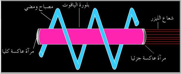 ليزر الياقوت هو نوع من انواع الليزر الصلب، وهو عبارة عن بلورة من الياقوت ذات لون أحمر تستعمل كوسط فعال، وتتكون هذه البلورة من أوكسيد الألمنيوم المضاف إليه أيونات الكروم الثلاثية، حيث إن أيونات الكروم هي التي تولد وتنتج مستويات طاقة في البلورة ويتم قطع بلورة الياقوت من الطرفين المقابلين قبل وضعها في جهاز الليزر ويطلى هاذين الطرفين بعنصر الفضة بحيث تتشكل مرآتان واحدة منهما تعكس الضوء بشكل كامل، والأخرى تعكس الضوء بشكل جزئي.
