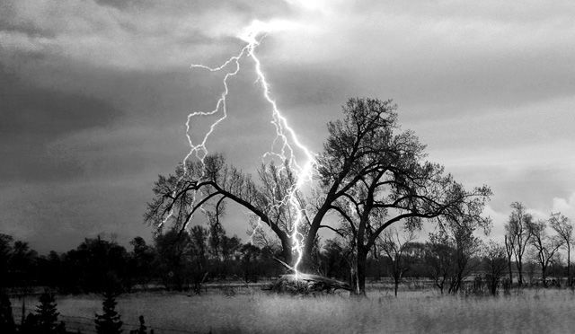 رغم أن خشب الشجرة عازل، إلا أن الماء الذي فيه يسهل مرور التيار الكهربائي نسبيا، ومع ذلك ومع وجود الفولت العالي، تُنتزع الإلكترونات من الذرات ويتكون تيار كهربائي شديد، وتحترق الشجرة بفضل المقاومة العالية والحرارة.