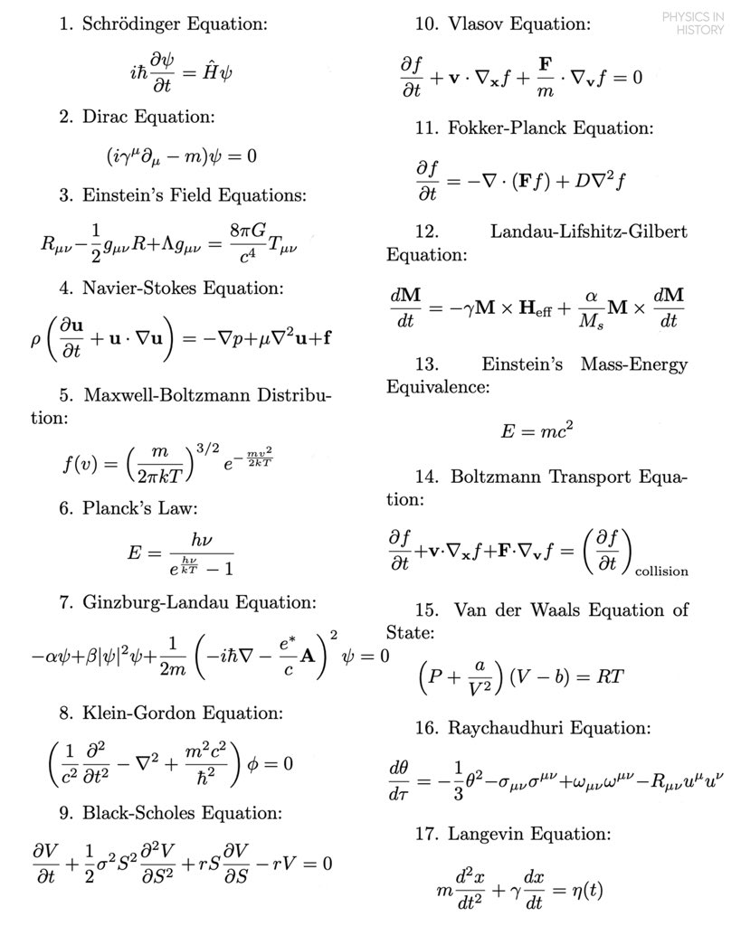 هنا قائمة لأحد أهم المعادلات الرياضية المستخدمة في الفيزياء الحديثة لوصف الظواهر الفيزيائية في كوننا!