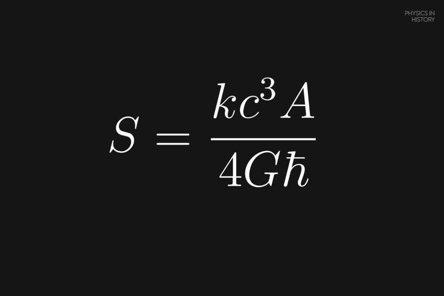 تربط هذه المعادلة الإنتروبيا S للثقب الأسود بالمساحة A لأفق الحدث الخاص به. هنا، k هو ثابت بولتزمان، G هو ثابت الجاذبية، ℏ هو ثابت بلانك المخفض، و c هي سرعة الضوء.