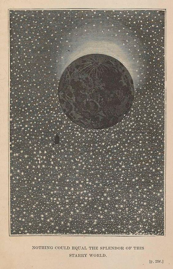 رسم توضيحي من عام 1874 من كتاب جول فيرن "من الأرض إلى القمر مباشرةً في سبعة وتسعين ساعة وعشرين دقيقة ورحلة حوله"