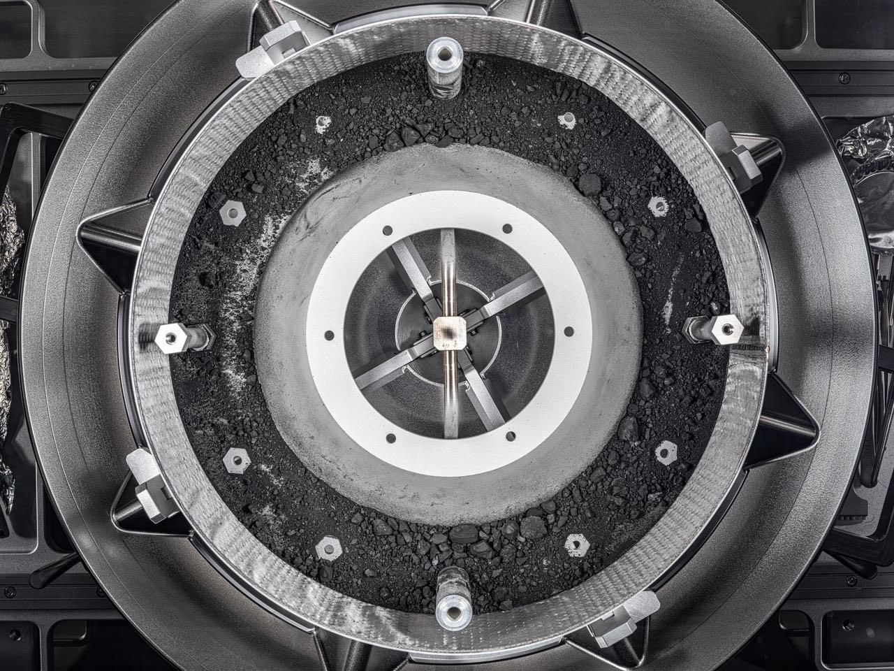 تُظهر هذه الصورة جزءًا من عينة كويكب تمّ دراسته بواسطة مهمة ناسا تدعى OSIRIS-REx تتضمن العينة غبارًا وصخورًا تصل إلى حوالي 1 سم. تم التقاط الصورة بتقنية التصوير الدقيق اليدوي وإجراء التركيز التلقائي شبه الآلي لإظهار تفاصيل دقيقة للعينة.