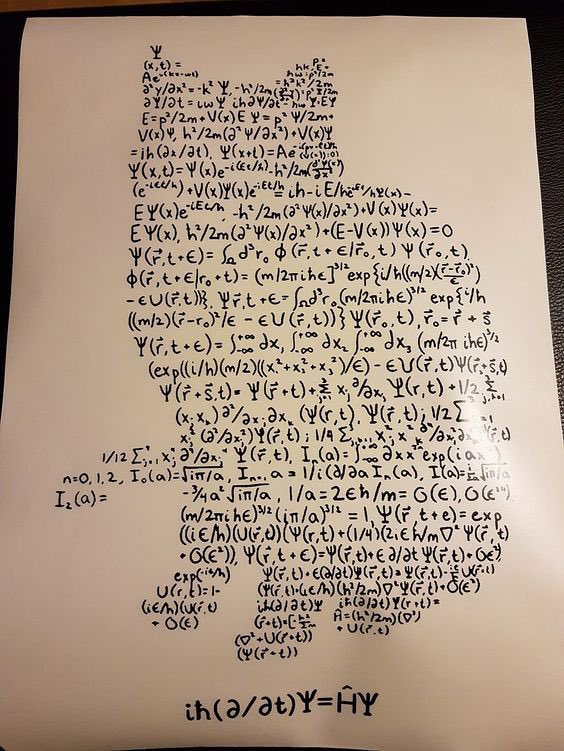 رسمة لقطة شرودنغر مرسومة بمعادلة شرودنغر