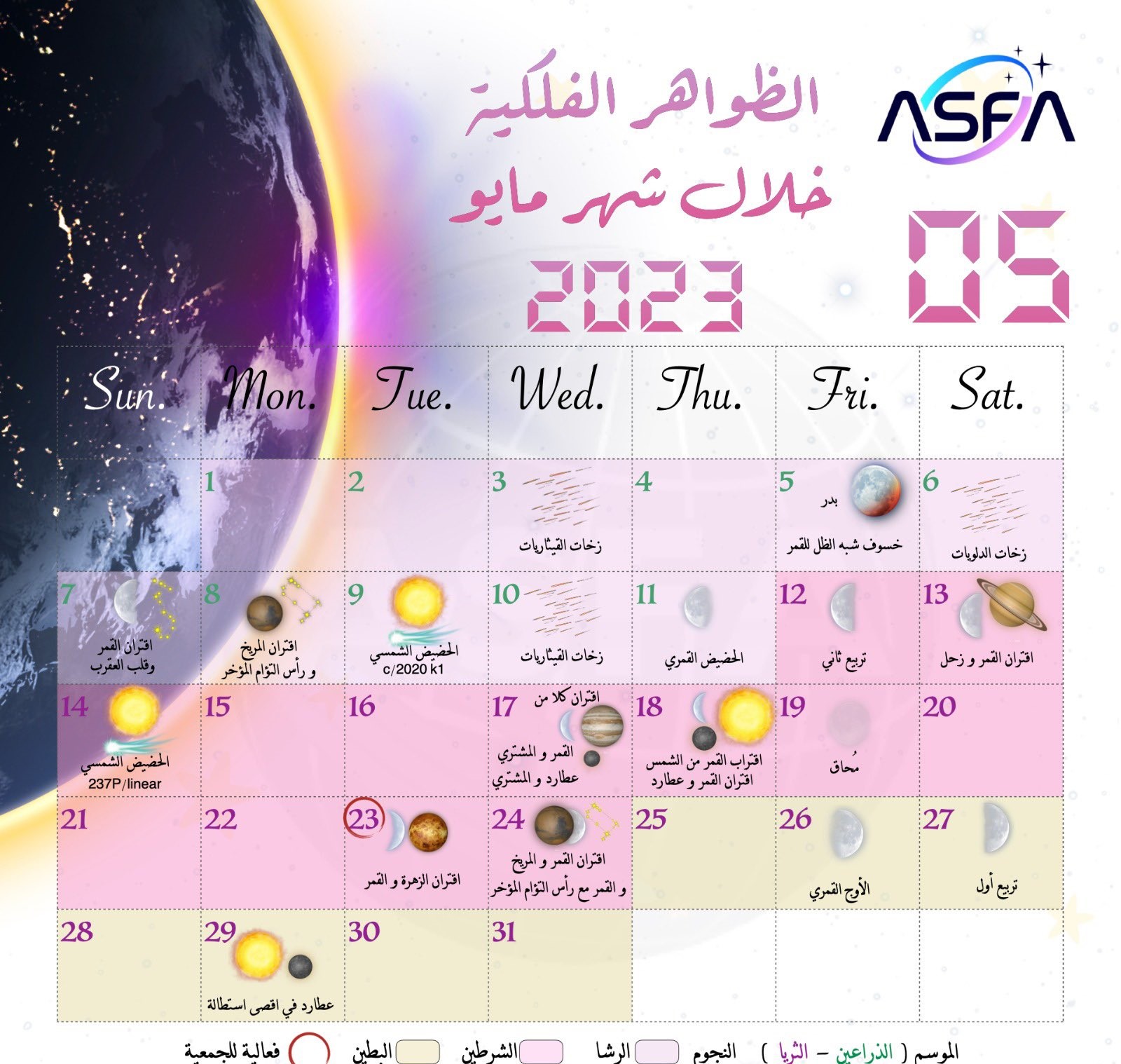 أبرز الأحداث والظواهر الفلكية خلال شهر مايو 2023 .