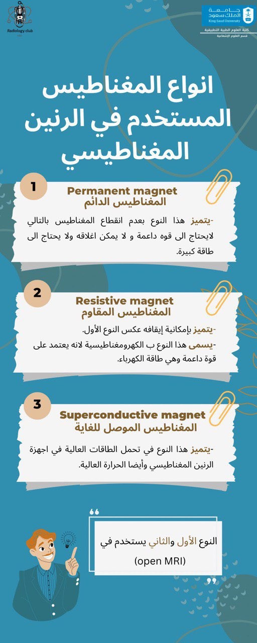 انواع المغناطيس المسستتخدمة في الرنين المغناطيسي.