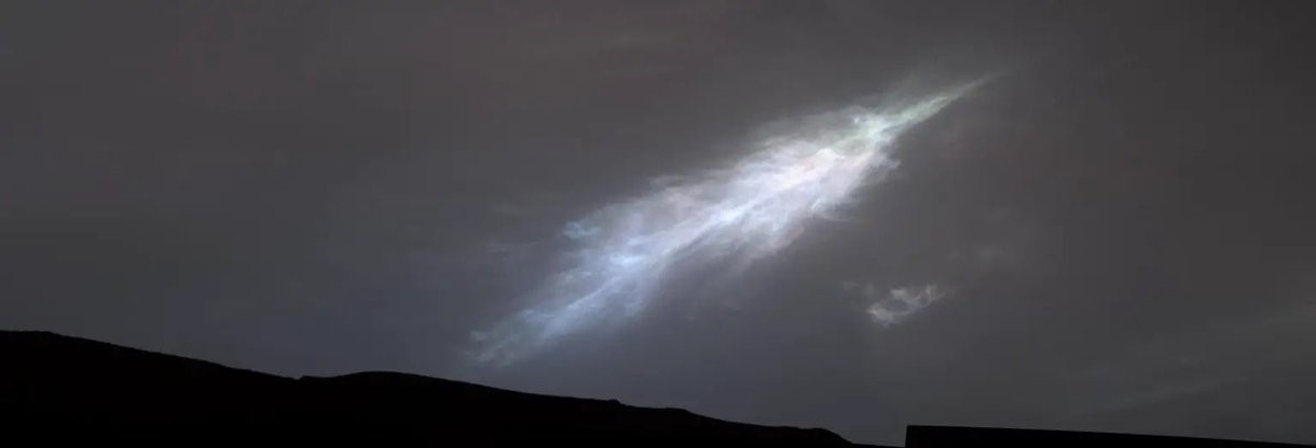 تم التقاط هذه السحابة القزحية على شكل ريشة بعد غروب الشمس مباشرة في 27 يناير 2023 يوم المريخ 3,724 من مهمة كيوريوسيتي.