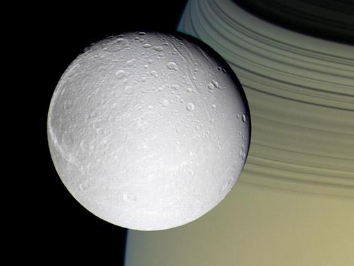 يتكون قمر كوكب زحل ديون من نواة صخرية كثيفة محاطة بجليدٍ مائيّ، وغلاف جوي قليل الكثافة يتكون من الأوكسجين، كما أن هناك احتمالية وجود محيط سائل أسفل سطحه.