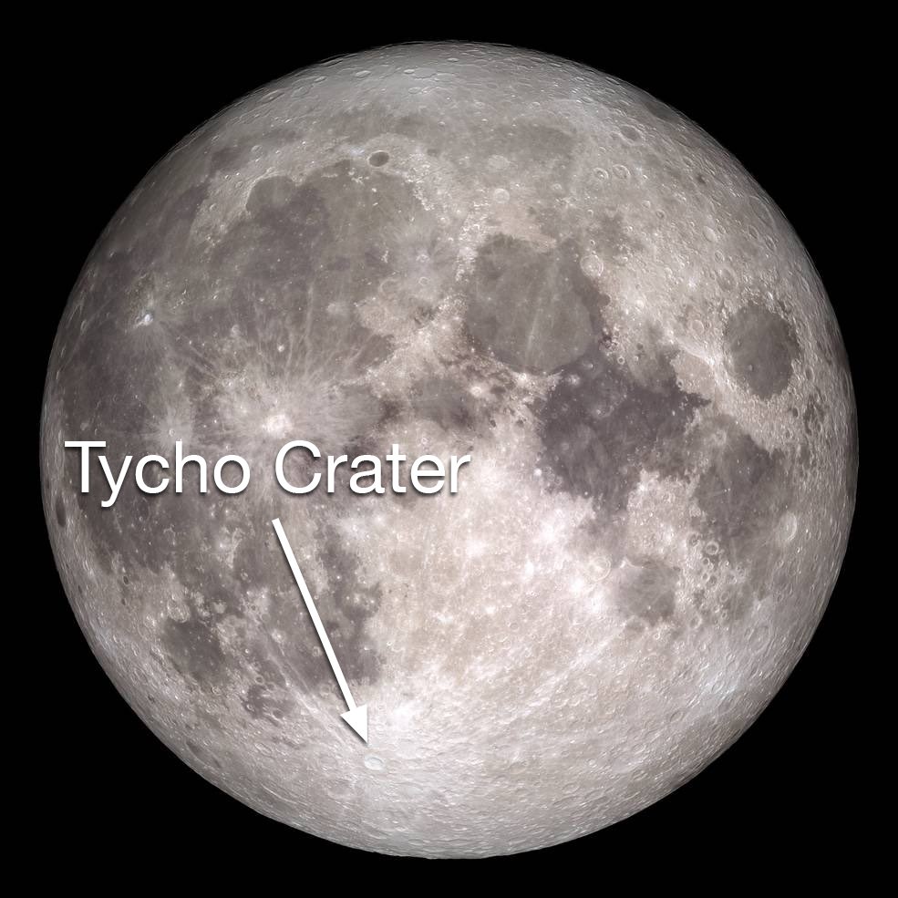 فوهة تايكو أو تيخو هي واحدة من أبرز الفوهات على سطح القمر. يبلغ قطرها (85 كيلومترًا) وهي واحدة فقط من بين آلاف الحفر المتشابهة الحجم. ويخبرنا تحديد العمر الإشعاعي أنها تشكلت قبل 108 مليون سنة .