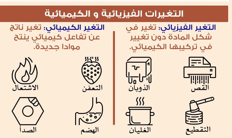 التغيرات الكيميائية والفيزيائية ..