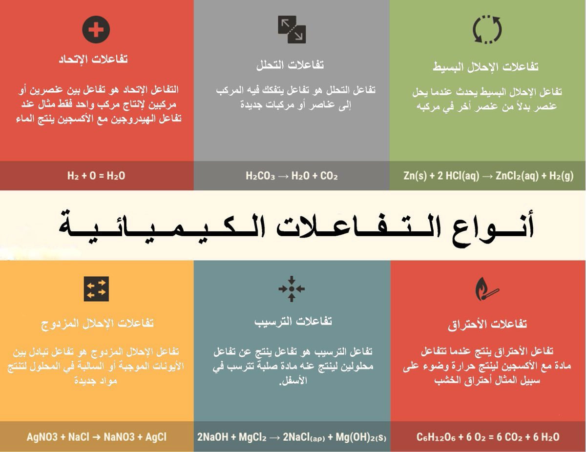 انواع التفاعلات الكيميائية