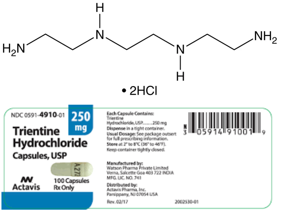 ثلاثي الإيثيلين رباعي الأمين TETA ، و تعرف أيضا باسم ترينتين Trientine ، و هي مادة سائلة زيتية عديمة اللون قد يميل لونها أحيانا إلى الإصفرار، صيغتها الكيميائية C6H18N4 و وزنها الجزيئي 146.23 جرام/مول . درجة انصهارها -34.6 درجة سيليزية و درجة غليانها تتراوح ما بين 266-267 درجة سيليزية و كثافتها 0.987 جرام/سم3 . قابلة للذوبان في الماء و الكحول . وهو عامل مخلبي يستخدم لربط وإزالة النحاس في الجسم لعلاج مرض ويلسون ، وخاصة في أولئك الذين لا يتحملون البنسيلامين