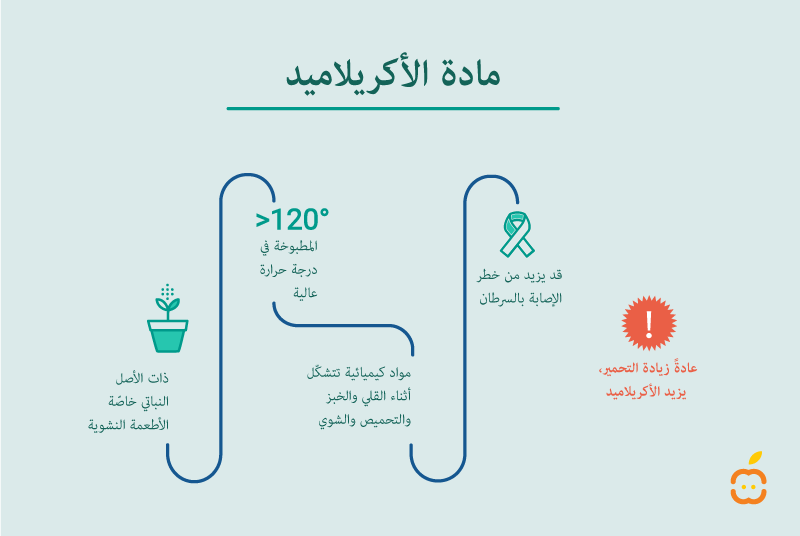 الاكريلاميد : ، تم تصنيع الأكريلاميد تاريخياً بشكل رئيسي من خلال ترطيب أكريلونيتريل (CH 2 CHCN) من حمض الكبريتيك أو محفزات النحاس. في عام 1980 تم اكتشاف إنزيم يعرف باسم هيدراتاز النتريل ، وهو قادر أيضًا على توليد مادة الأكريلاميد من أكريل نيتريل ، في الكائنات الحية الدقيقة. نجح هذا الإنزيم بعد ذلك في استخدام محفزات حامض الكبريتيك والنحاس في الإنتاج الصناعي للأكريلاميد. يعتقد انها تتكون نتيجة قلي الطعام كثيرا و متهمة بتسسبها بالسرطان