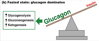 بعدها يهبط كلوكوز البلازما بصورة كافية ليثبط انطلاق الأنسولين ويحفز عندئذ إنتاج الكلوكاكون. وتحفز الكبد والكليتين على إنتاج الكلوكوز وتحفز انطلاق الأحماض الدهنية الحرة في…