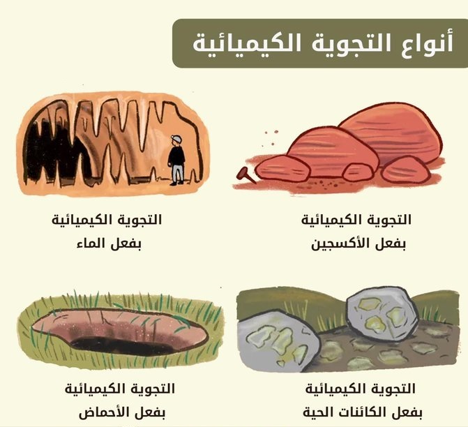 التجوية (Weathering) العملية التي تؤدي الى تفتت وتحلل الصخور والمعادن والتربة على سطح الأرض أو قربه بواسطة عدة عوامل جوية سائدة دون نقل الفتات الى مكان اخر. تختلف التجوية عن التعرية أو التحات في أن التحات تعتي تفتيت الصخور ونقل هذا الفتات وترسيبه في مكان اخر.