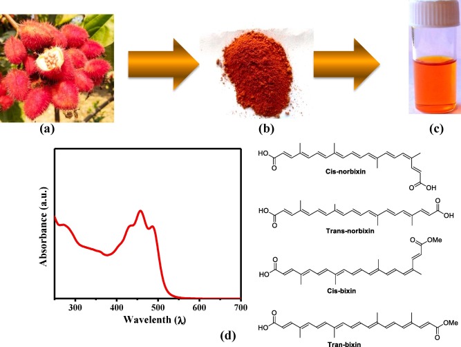 البكسين Cis-bixin: مادة لونية من الكاروتينات الأكسجينية. اللون بين الأحمر والأحمر المصفر. يستخرج من من غلاف بذور فاكهة شجرة أناتو (Annato). يستخدم من أجل الطعام، والزيوت، والسمن الصناعي النباتي، وغلاف الجبنة، والشموع، والبرانق. تعطي الشجرة الواحدة 1-3 كيلو من البذور، و 100 كيلو بذور تعطي 120-160غم صباغ بكسين صافي