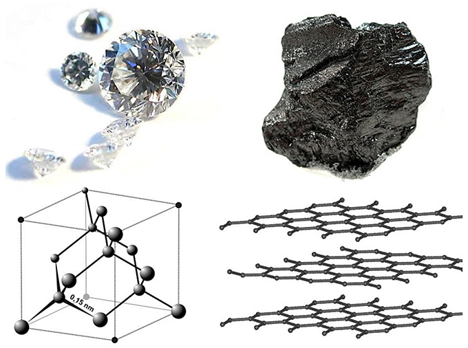 • العنصر الخالص مثل الكاربون يأخذ أشكالا عديدة. على سبيل المثال، فكلا الالماس والجرافيت هما شكلان من اشكال الكربون النقي