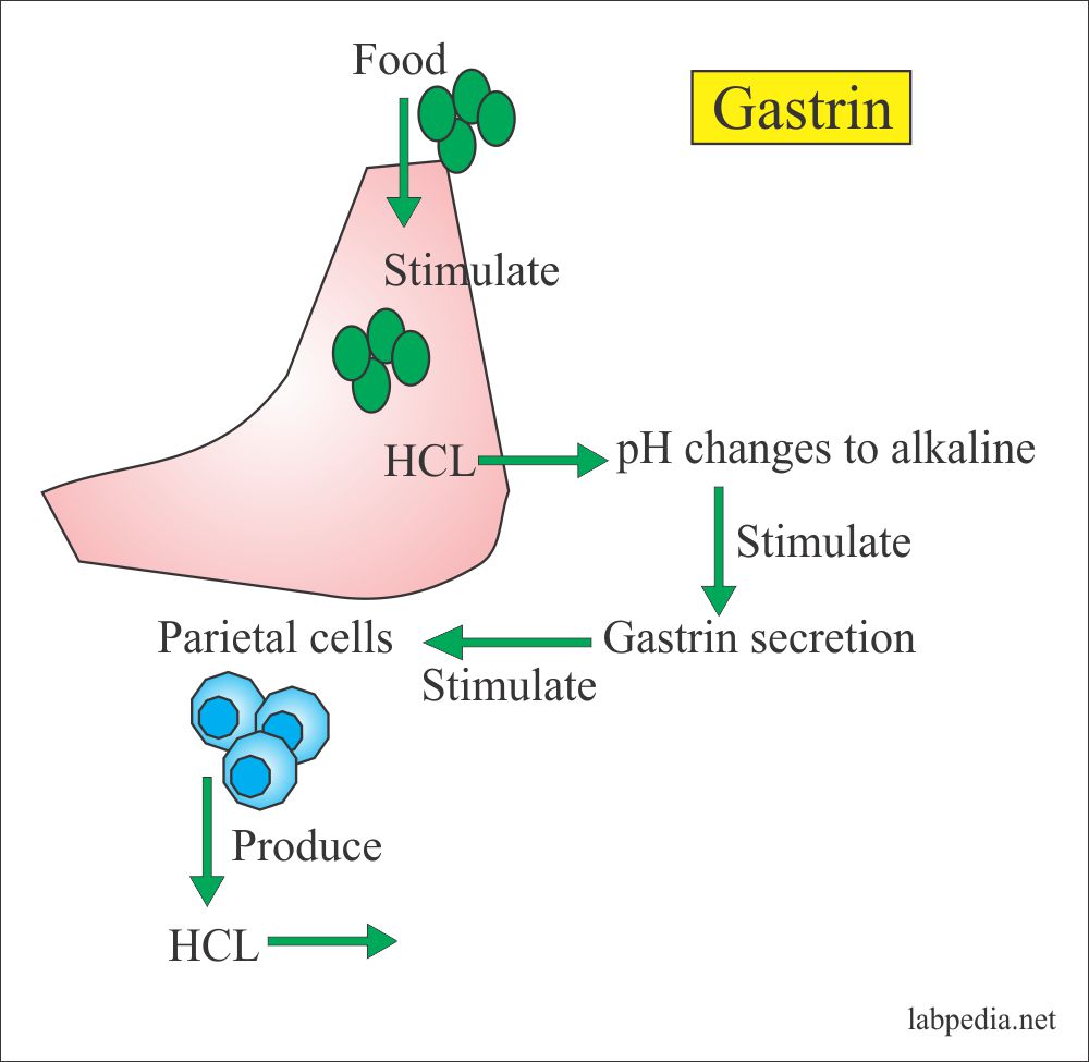 وهو من هورمونات الجهاز الهضمي يتم افراز هذا الهورمون من قبل خلايا خاصة في المعدة، استجابة الى اشارة تأتي من العصب المبهم (Vagal Stimulation)، او نتيجة تناول الطعام وخصوصا المواد الغذائية البروتينية والأحماض الامينية. يقوم هذا الهورمون بحث الخلايا الجانبية (Parietal cells) على افراز حامض الهيدروكلوريك (HCl)، كذلك يستثير هذا الهورمون الخلايا الرئيسية (Chief cells) لإفراز أنزيم البيسنوجين (Pepsinogen)، كما يحفظ كذلك اطلاق العامل داخلي المنشأ من غشاء المعدة…