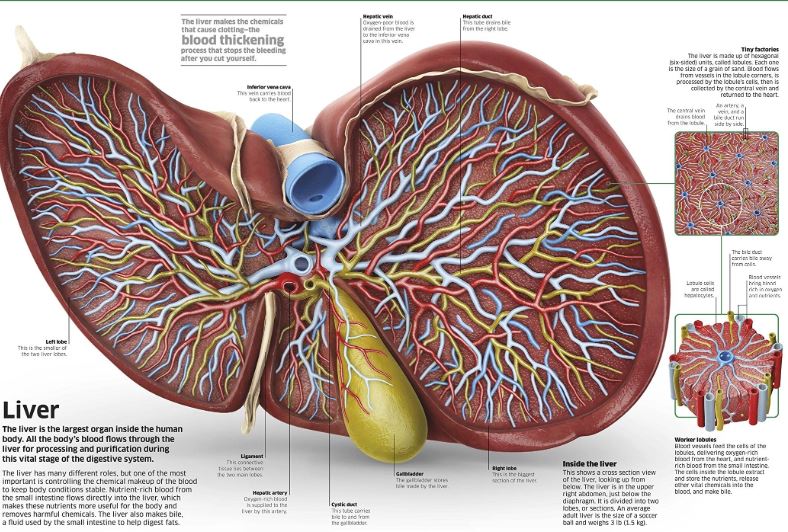 العضو المميز يعتبر المصنع الكيميائي لجميع عناصر الجسم (الشعر,الجلد, الانزيمات , الهورمونات, الغضاريف) وكذلك يعتبر مخزن الطاقة الرئيسي (الكلايكوجين: سكريات متعددة مخزونة بهيئة مركب). والجهازالدفاعي الاقوى ضد الامراض (الخلايا المناعية تصنع معضمها في الكبد) وجميع المضادات الحيوية والسموم يتولى الكبد مسؤلية تكفلها وهضمها وانتاج كافة انزيمات الهظم ولاهميته العظيمة فهو العضو الوحيد اذا قطع جزء منه يستطيع تعويضه. الطريقة الوحيدة للحفاظ على نشاطه هي الصيام والتجويع.
