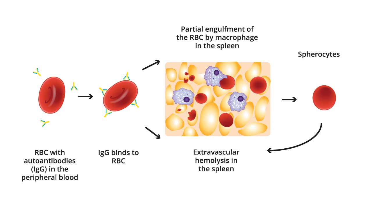 اضطراب يحدث عند تكون أجسام مضادة ذاتية ضد كريات الدم الحمراء (IgG في النوع الدافئ أو IgM في النوع البارد) حيث ترتبط هذه الأجسام المضادة بالكريات مسببة تكسيرها، ففي الطحال يحدث انحلال خارج الأوعية عبر البلعميات بعد تغطية الكريات بالأجسام المضادة بينما في الدوران الدموي يمكن أن تنشط المتممة عبر المسار الكلاسيكي مسببة ترسيب C3b وتكوين معقد MAC وحدوث انحلال داخل الأوعية وتظهر سريرياً بأعراض مثل الشحوب، اليرقان، تضخم الطحال، والبول الداكن.