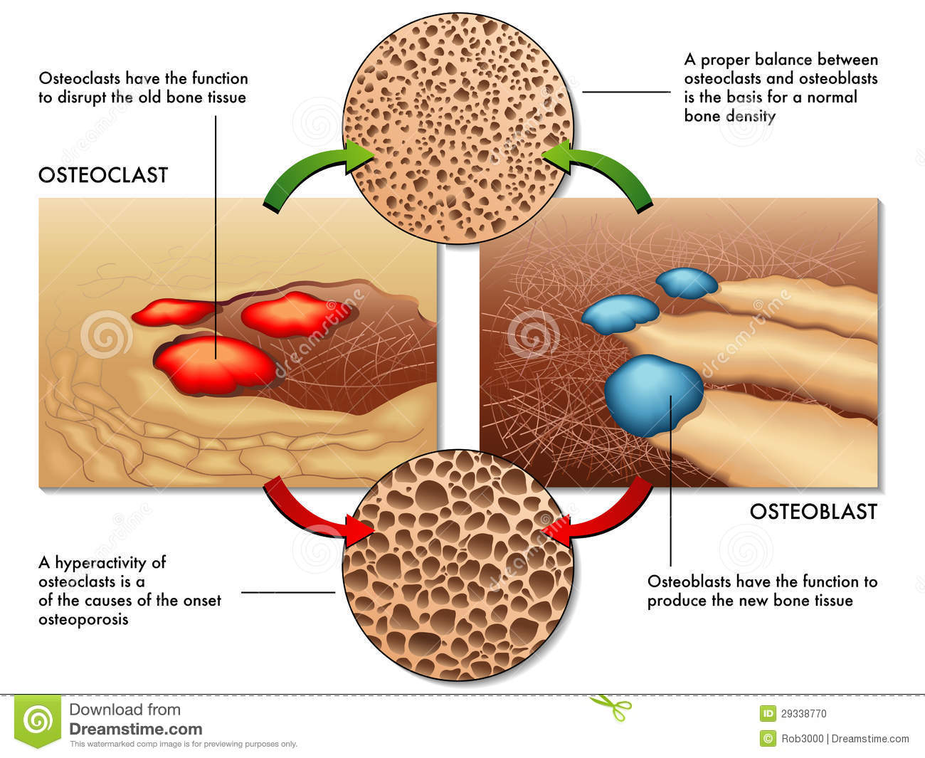 الخلايا الهادمة للعظم Osteoclasts وهي خلايا مُتعدِّدة النوى، تَستخدِم الإنزيمات والأحماض؛ لتحطيم العظم وإعادة استخدامه؛ وذلك لتكوين عظام جديدة.