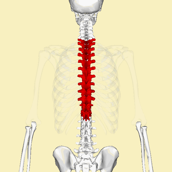 الفقرات الصدرية: وهي عبارة عن 12 فقرة، مرتبة من(T1-T12)، حيث تتحد مع الأضلاع التي تمتد للأمام، التي بدورها تكون القفص الصدري، وتتميز هذه الفقرات بأنها ذات أحجام متوسطة.