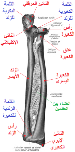الكعبرة هي أحد عظام منطقة اليد، والتي تربط بين المرفق والرسغ وهي العظمة الخارجية وتكون أقصر من عظم الساعد، وتسهل الكعبرة حركة كف اليد للأعلى والأسفل، وتوجد عظمة الكعبرة في الجانب الأيسر من عظمة الزند، و يوجد في منطقة الزند القناة الكعبرية التي يمر فيها العصب الكعبري متحداً مع أعصاب الساعد. وشكل عظمة الكعبرة عبارة عن منشور وتنحني بشكل طولي، وهي العظمة الرئيسية في مفصل الرسغ. ويمكن حصول الكسور العديدة لعظم الكعبرة ويتم علاجة حسب حالة الكسر.